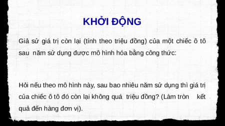 Giả sử giá trị còn lại (tính theo triệu đồng) của một chiếc ô tô