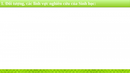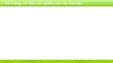 - 1. Đối tượng, các lĩnh vực nghiên cứu của Sinh học: