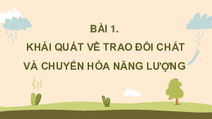- Slide 4: BÀI 1. KHÁI QUÁT VỀ TRAO ĐỔI CHẤT VÀ CHUYỂN HÓA NĂNG LƯỢNG