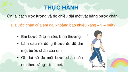1. Bước chân của em dài khoảng bao nhiêu xăng – ti – mét?