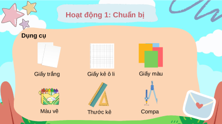 Hoạt động 1: Chuẩn bị Dụng cụ Giấy trắng Giấy kẻ ô li Giấy màu Màu vẽ Thước kẻ Compa