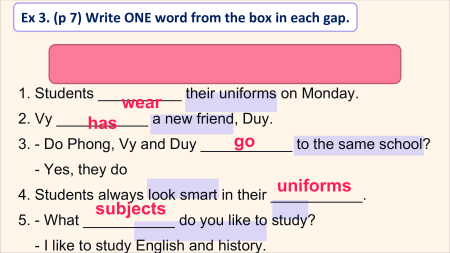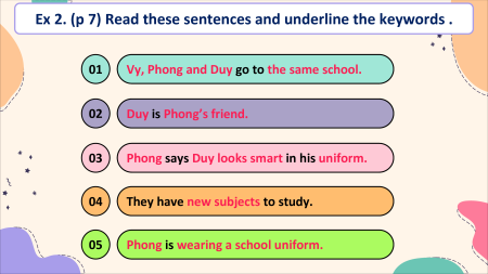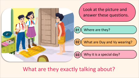 ✓ Vocabulary to talk about school things. Vy Phong Duy-Vy’s new friend A special day