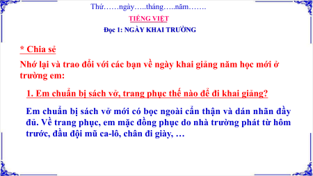 1. Em chuẩn bị sách vở, trang phục thế nào để đi khai giảng?