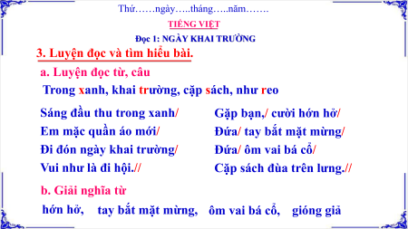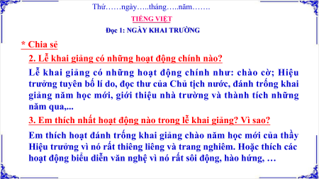 Nhớ lại và trao đổi với các bạn về ngày khai giảng năm học mới ở trường em: