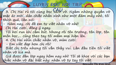Đọc trôi chảy bài đọc, ngắt nghỉ đúng dấu câu, đúng logic ngữ nghĩa; bước