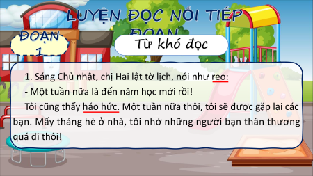 nhỏ mong muốn được trở lại trường học để gặp lại bạn bè sau kì nghỉ hè;