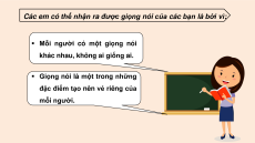 Các em có thể nhận ra được giọng nói của các bạn là bởi vì: