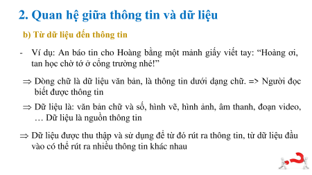 - Thông tin được lưu trữ hay gửi đi dưới dạng dữ liệu chữ và số, dữ