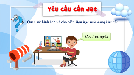 Quan sát hình ảnh và cho biết: Bạn học sinh đang làm gì? Học trực tuyến