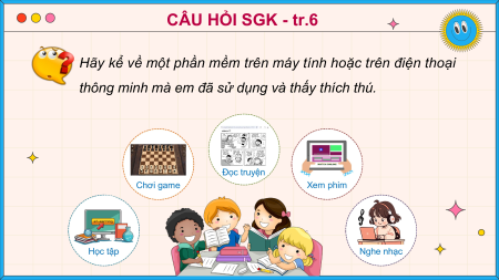 động như học tập, giải trí, trao đổi thông tin,... Em hãy cùng