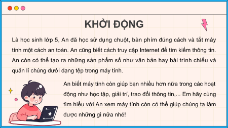 Là học sinh lớp 5, An đã học sử dụng chuột, bàn phím đúng cách và tắt máy