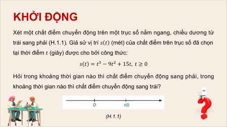 trái sang phải (H.1.1). Giả sử vị trí � � (mét) của chất điểm trên trục số đã chọn