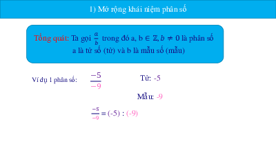 Tổng quát: Ta gọi ? trong đó a, b ∈ ℤ, ? ≠ 0 là phân số ?