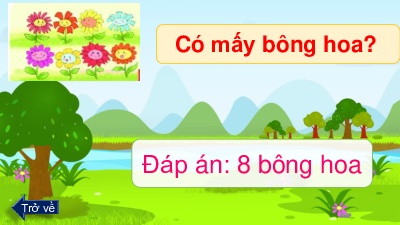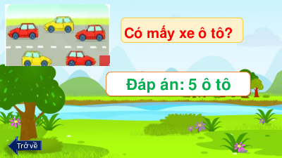 Có mấy con gấu? Đáp án: 9 con Trở về Có mấy bông hoa? Đáp án: 8 bông hoa Trở về Có mấy xe ô tô? Đáp án: 5 ô tô Trở về