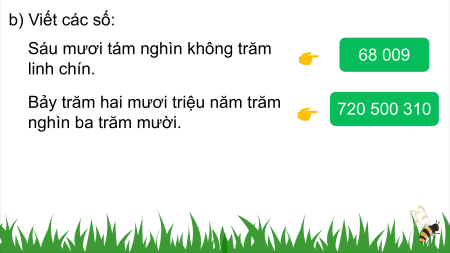 • Bảy trăm hai mươi triệu năm trăm nghìn ba trăm mười. c) Số?
