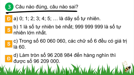 tự nhiên: Đọc, viết, so sánh, thứ tự, cấu tạo số; làm tròn số; …