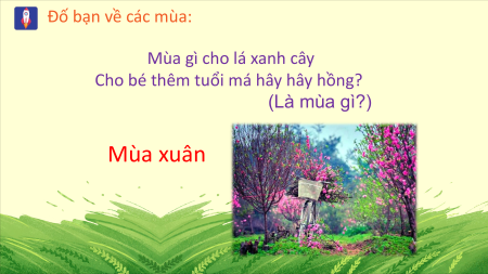 Cho bé thêm tuổi má hây hây hồng? (Là mùa gì?) Mùa xuân