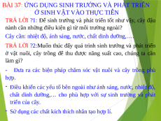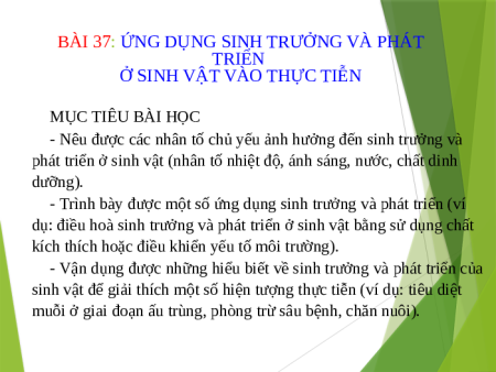 BÀI 37: ỨNG DỤNG SINH TRƯỞNG VÀ PHÁT TRIỂN
