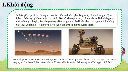 công nghệ. Trên hình là Tàu thăm dò Mars 2020 của NASA đã hạ cánh xuống Hoả Tinh ngày 18-2-2021. 1.Khởi động