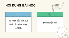 CHỦ ĐỀ 1: VẬT LÍ NHIỆT SỰ CHUYỂN THỂ BÀI 1: CỦA CÁC CHẤT NỘI DUNG BÀI HỌC I. I . Sơ lược cấu trúc của Sự chuyển thể chất rắn, chất lỏng, chất khí