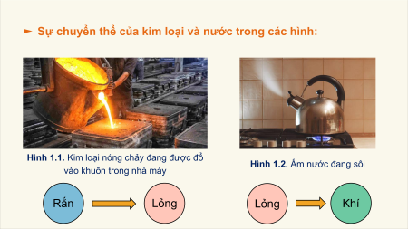 ► Sự chuyển thể của kim loại và nước trong các hình: