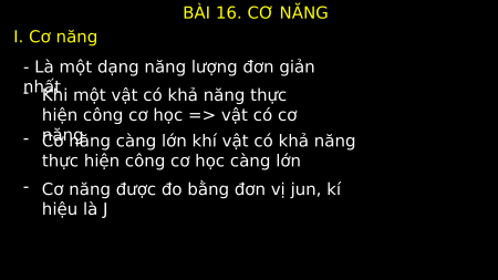 viên gạch đó có cơ năng. Vậy cơ năng là gì? m 4 = h BÀI 16. CƠ NĂNG I. Cơ năng BÀI 16. CƠ NĂNG I. Cơ năng