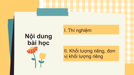 KHỐI LƯỢNG RIÊNG VÀ ÁP SUẤT BÀI 13: KHỐI LƯỢNG RIÊNG I. Thí nghiệm Nội dung bài học