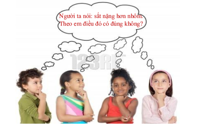 1 m3 sắt và 1 m3 nhôm vật nào có khối lượng (kg) lớn hơn? Đem cân ta được: Sắt có khối lượng lớn hơn.