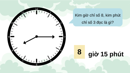 Kim giờ chỉ số 8, kim phút 10 2 chỉ số 3 đọc là gì? 9 3 8 4 8 giờ 15 phút 7 5 6 12 11 1