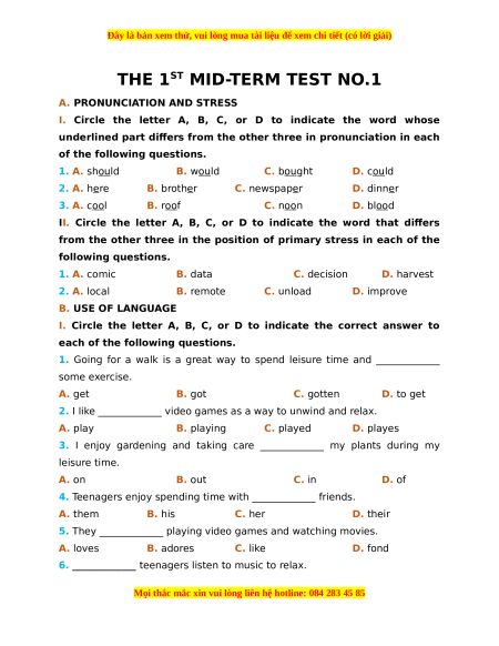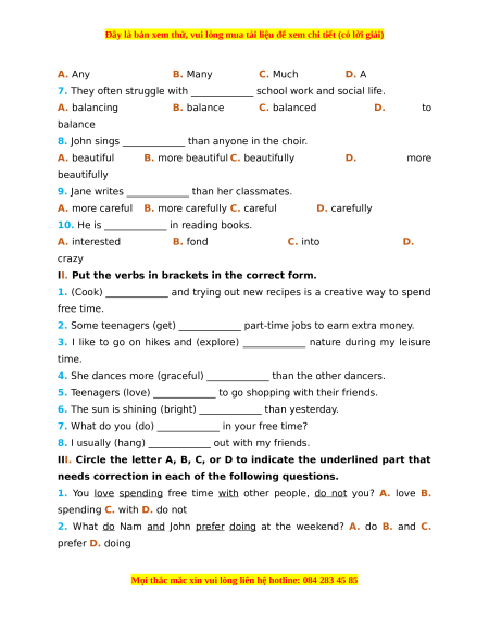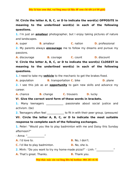Đây là bản xem thử, vui lòng mua tài liệu để xem chi tiết (có lời giải)