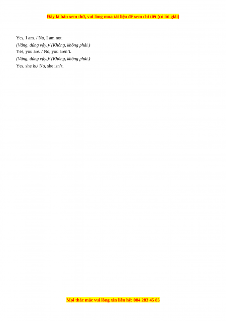 No, I/ we/ you/ they + don’t. Yes, he/ she/ it + does. No, he/ she/ it + doesn’t. VÍ DỤ: