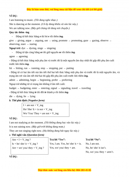 a. Thể khẳng định (Positive form) I + am + V_ing He/She/It + is + V_ing We/You/They + are + V_ing