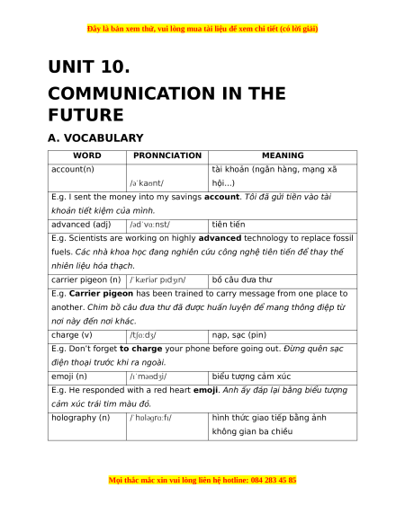 UNIT 10. COMMUNICATION IN THE FUTURE A. VOCABULARY WORD PRONNCIATION MEANING account(n)
