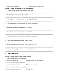 Exercise 1. Choose the word with the underlined part which is differently pronounced from the others. 1. A. invented B. developed C. stressed D. danced 2. A. classes B. lenses C. teaches D. classmates 3. A. school B. good C. room D. soon 4. A. contact B. computer C. document D. conference 5. A. face B. cancer C. planet D. laptop 6. A. scanner B. platform C. activity D. motivate 7. A. early B. study C. quality D. simplify 8. A. bulb B. club C. cure D. study 9. A. essay B. lesson C. stress D. expression 10. A. check B. watch C. school D. teach