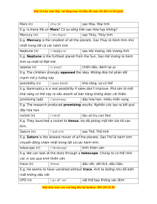 E.g. Is there life on Mars? Có sự sống trên sao Hỏa hay không? Mercury (n) /ˈmɜːrkjəri/ sao Thủy, Thủy tinh