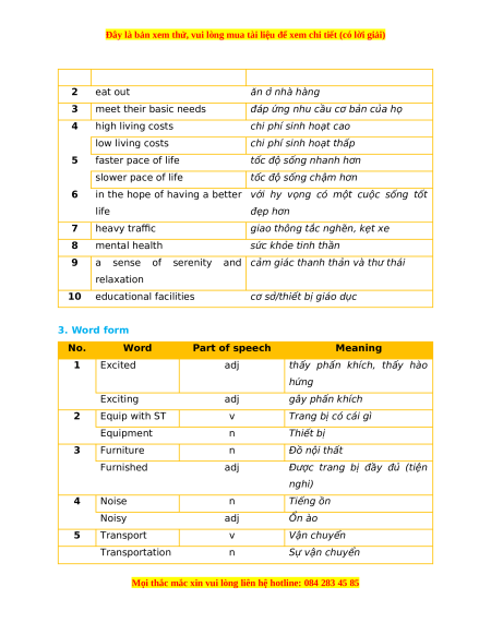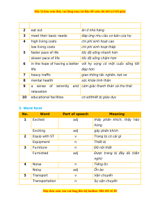 Được trang bị đầy đủ (tiện nghi) 4 Noise n Tiếng ồn Noisy adj Ổn ào 5 Transport v Vận chuyển Transportation n Sự vận chuyển