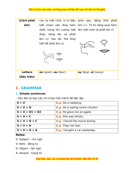 oy (boy), oi (voice) (Dấu hiệu) C. GRAMMAR 1. Simple sentences