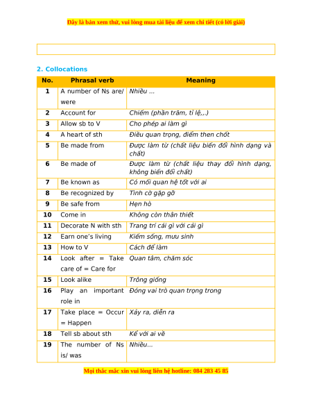 2. Collocations No. Phrasal verb Meaning 1