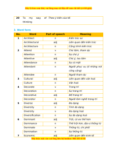 ETHNIC GROUPS OF VIET NAM A. VOCABULARY 1. Vocabularies No. Word Part Pronunciatio Meaning of n speec h 1 Ash n /æʃ/ Tro, tàn 2 A detached n /ə dɪˈtætʃt haʊs/