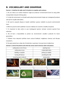 Exercise 3. Fill each blank with a word/ phrase in the box. a campfire single-use products paper products rubbish trees carbon footprint endangered species electricity