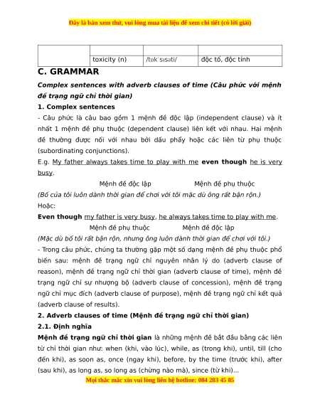 toxicity (n) /tɒkˈsɪsəti/ độc tố, độc tính C. GRAMMAR