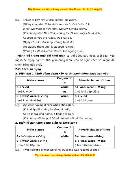 2. Adverb clauses of time (Mệnh đề trạng ngữ chỉ thời gian)