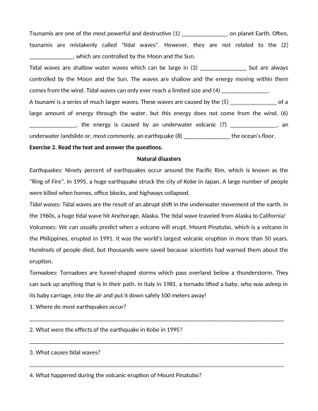 Exercise 1. Complete the following passage using a word from the box for each numbered blank. size speed movement instead eruption on natural forces tides
