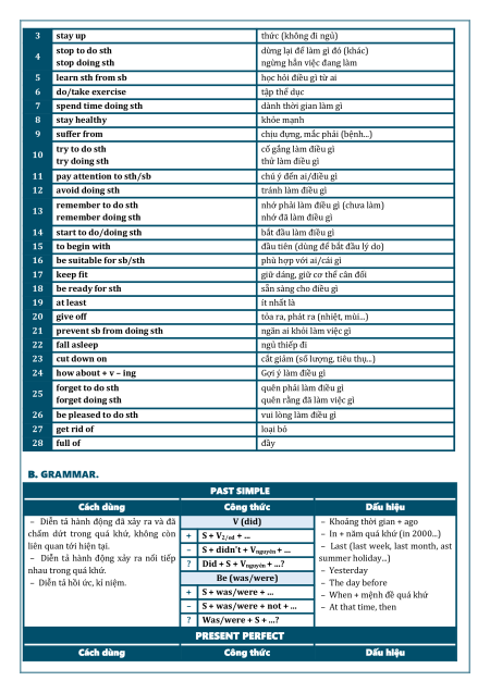 quên rằng đã làm việc gì 26 be pleased to do sth vui lòng làm điều gì 27 get rid of loại bỏ 28 full of đầy B. GRAMMAR. PAST SIMPLE Cách dùng Công thức Dấu hiệu