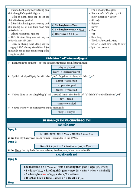 Ví dụ: Since the city built the new subway line last year, it has reduced traffic. CHUYỂN ĐỔI THÌ Dạng 1: