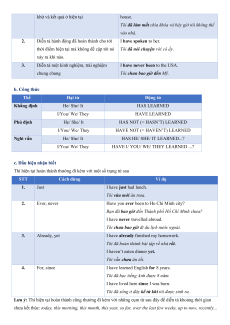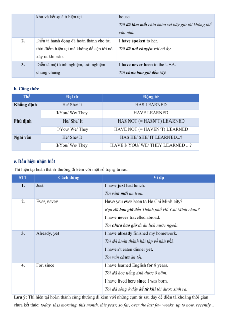 2. THÌ HIỆN TẠI HOÀN THÀNH a. Cách dùng STT Cách dùng Ví dụ 1.