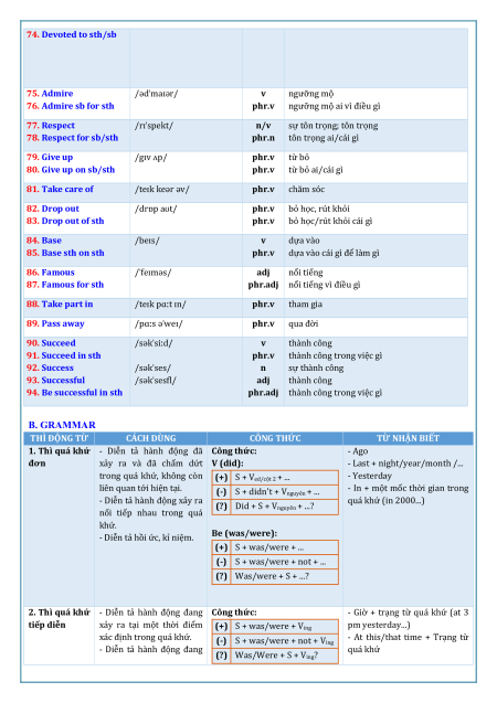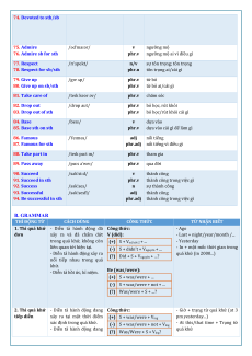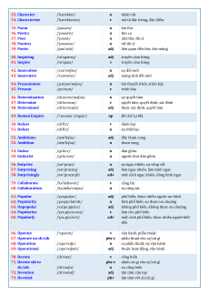 thuộc hoạt động, vận hành 70. Devote /dɪˈvəʊt/ v cống hiến 71. Devote sth to phr.v dành cái gì cho ai/cái gì sb/sth /dɪˈvəʊʃn/ n sự cống hiến 72. Devotion /dɪˈvəʊtɪd/ adj tận tâm, tận tụy 73. Devoted phr tận tâm với ai/cái gì 74. Devoted to sth/sb 75. Admire /ədˈmaɪər/ v ngưỡng mộ 76. Admire sb for sth phr.v