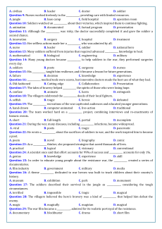 Question 3: Despite losing her ____________ in the war, she was raised by a kind veteran who shared their heroic stories. A. neighbors B. childhood friends C. relatives D. biological parents