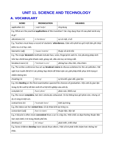 UNIT 11. SCIENCE AND TECHNOLOGY A. VOCABULARY WORD PRONNCIATION MEANING application (n) /ˌæplɪˈkeɪʃn/ ứng dụng