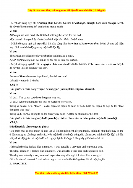 Các câu dù viết theo cách thức nào trong ba cách trên đều không thay đổi về mặt ý nghĩa. B. PRACTICE